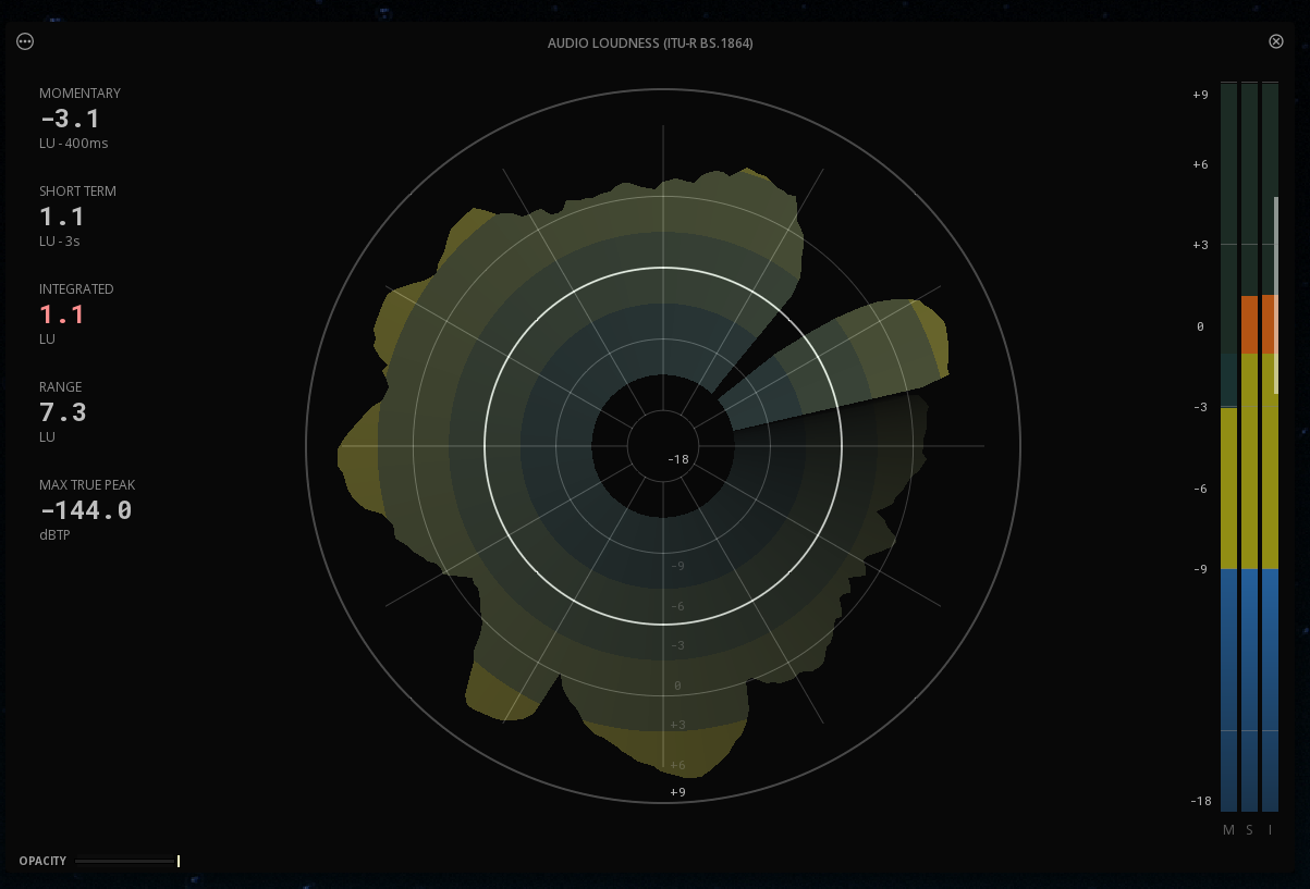 The Loudness meter is available as a GRAPH or a RADAR: click on the OPTIONS icon or right click on the scope to display the options