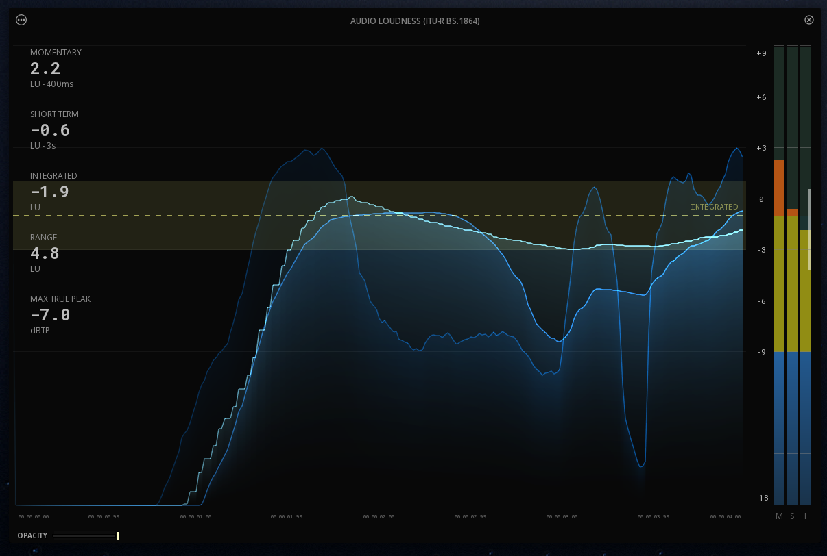 Averages loudness over a 3-second period, useful for evaluating specific parts of a track