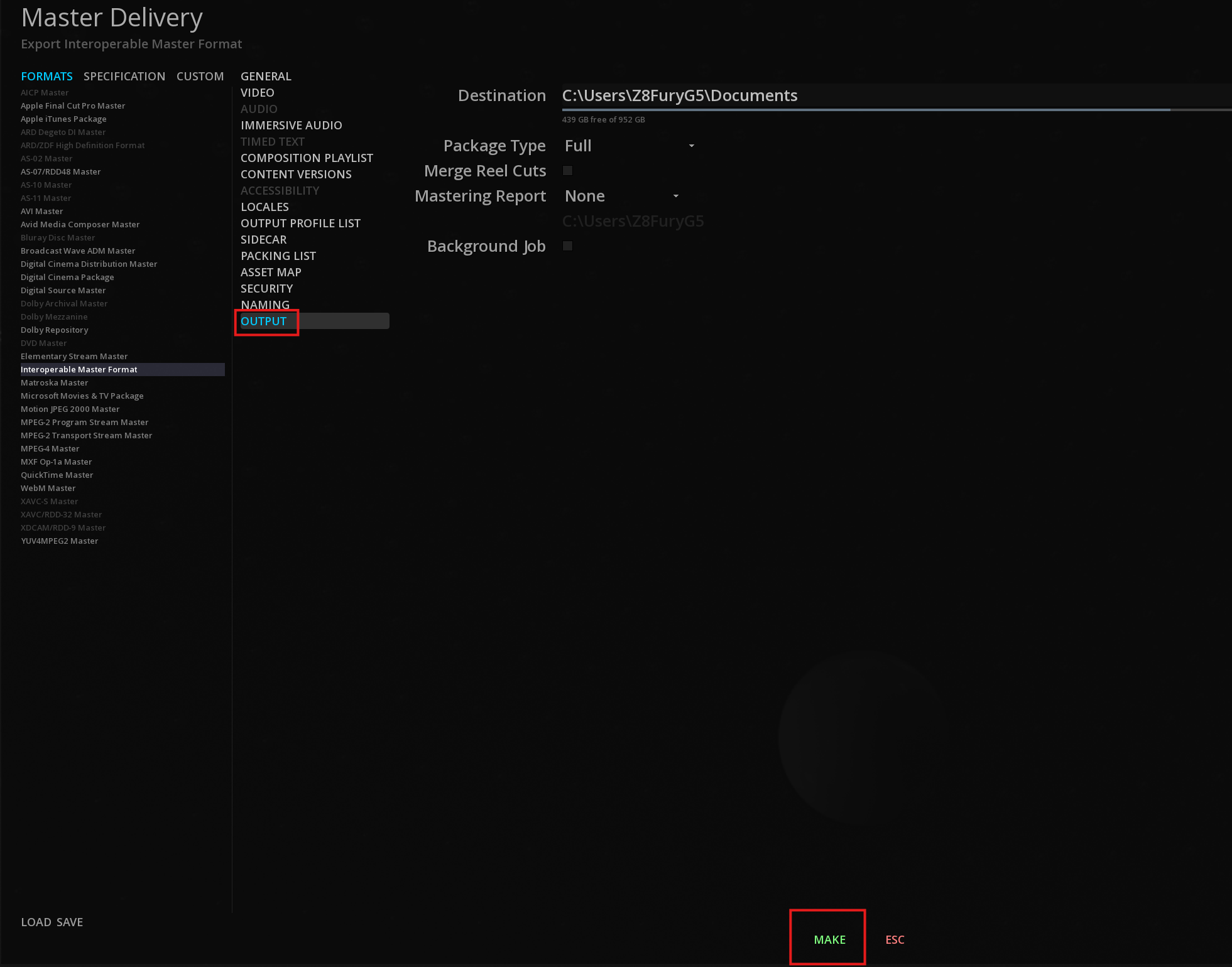 -> Select the Interoperable Master Format from the FORMATS column and set all the parameters for the output.