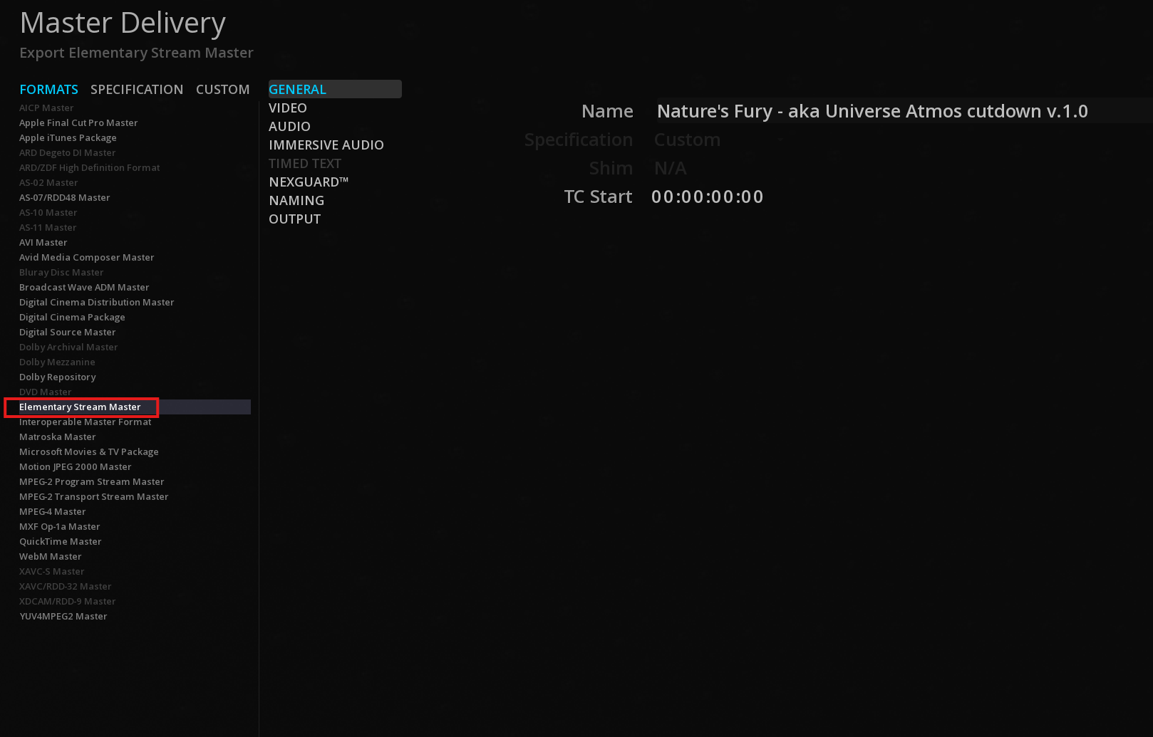 Export the Dolby Atmos source file in a RAW Immersive Audio Bitstream, IMF profile 1.