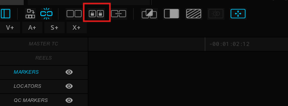 Position the PlayHead on the desired location in both timelines and click the LOCK icon: